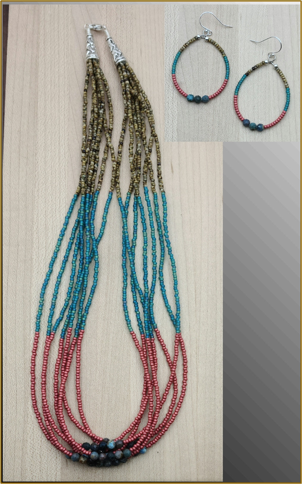 Apatite & Seed Bead Multi-Strand Necklace & Earrings