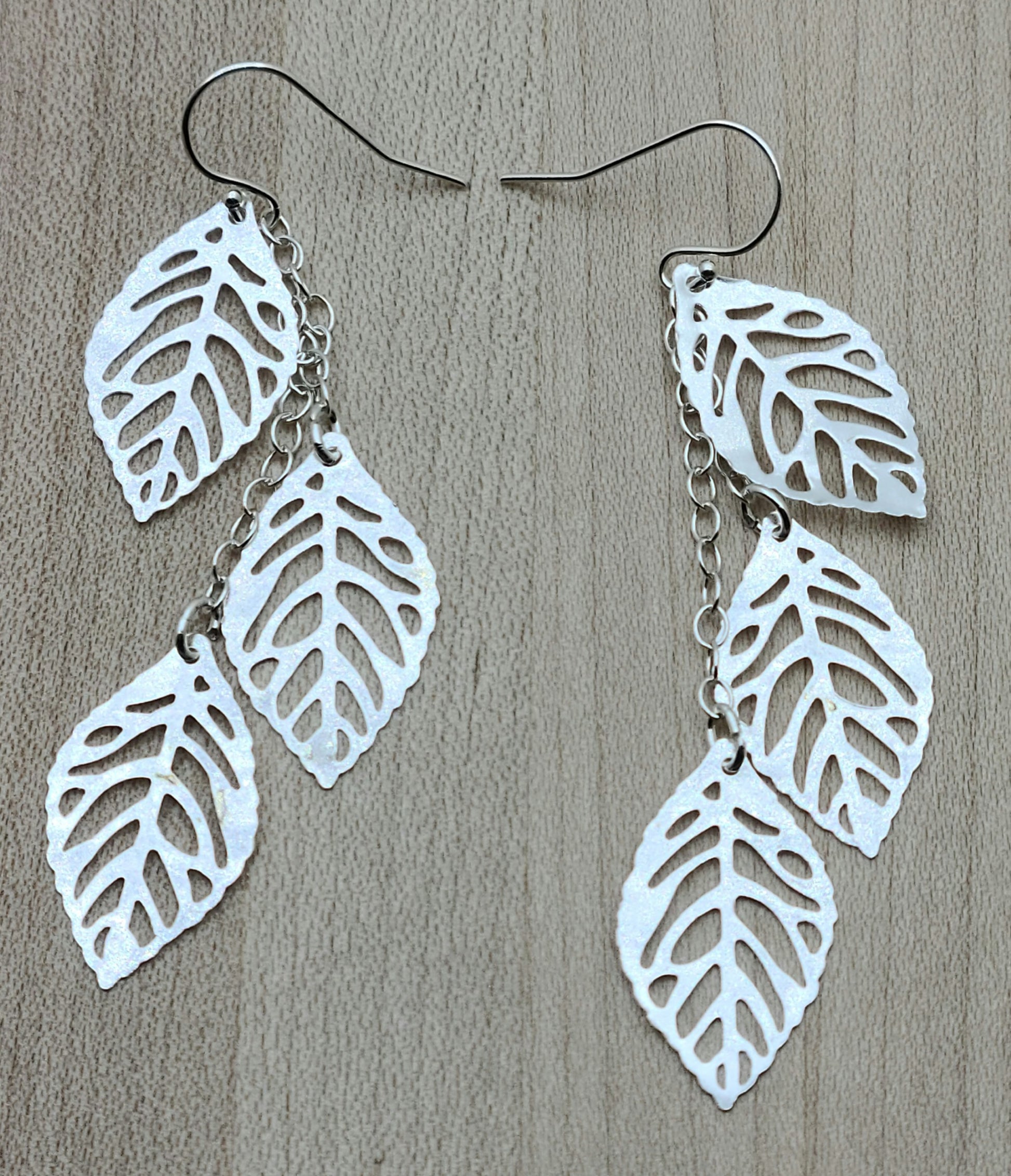 - Get lost in the whimsical wonder of these Cascading Leaves Earrings! Three lightweight silver plated leaves effortlessly dance down from the sterling silver chain, hanging from sterling silver fish hook ear wires. Enjoy painless movement and make a stylish statement with these unique and playful earrings.