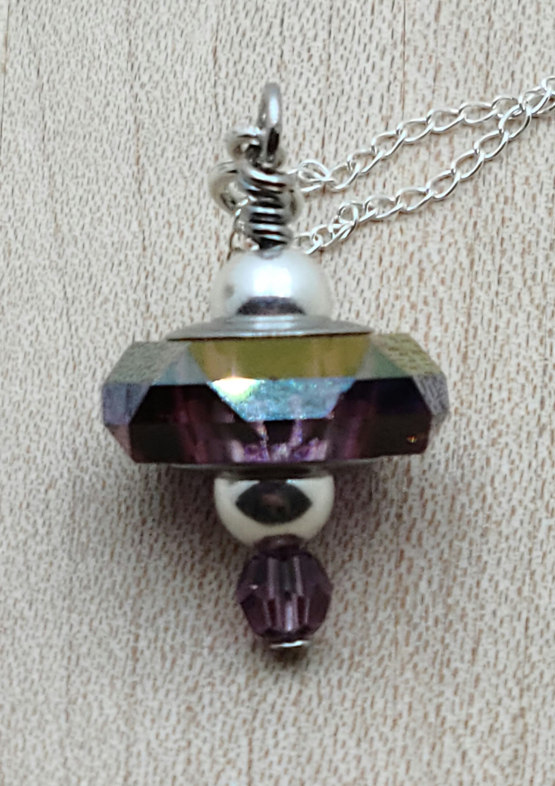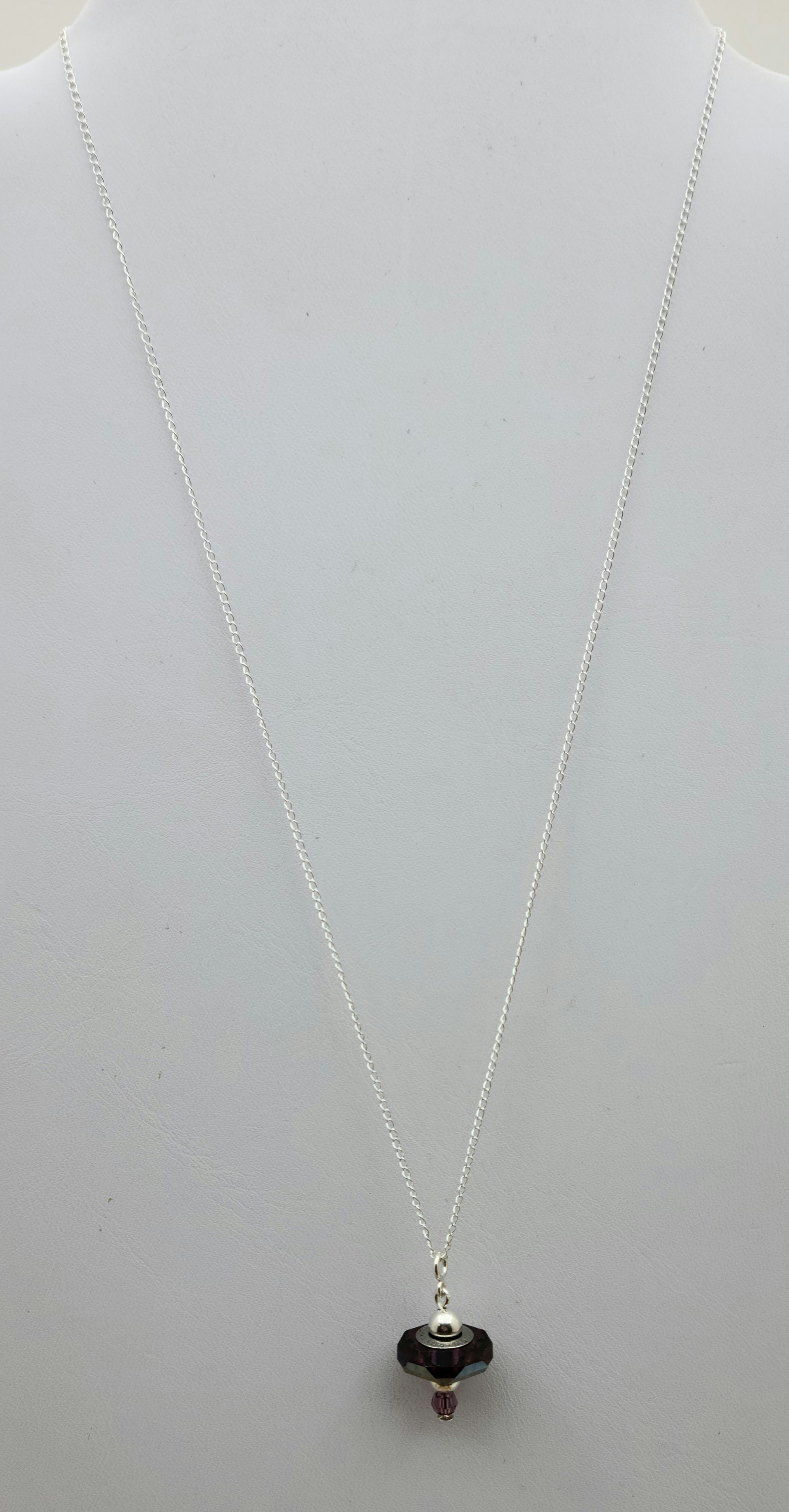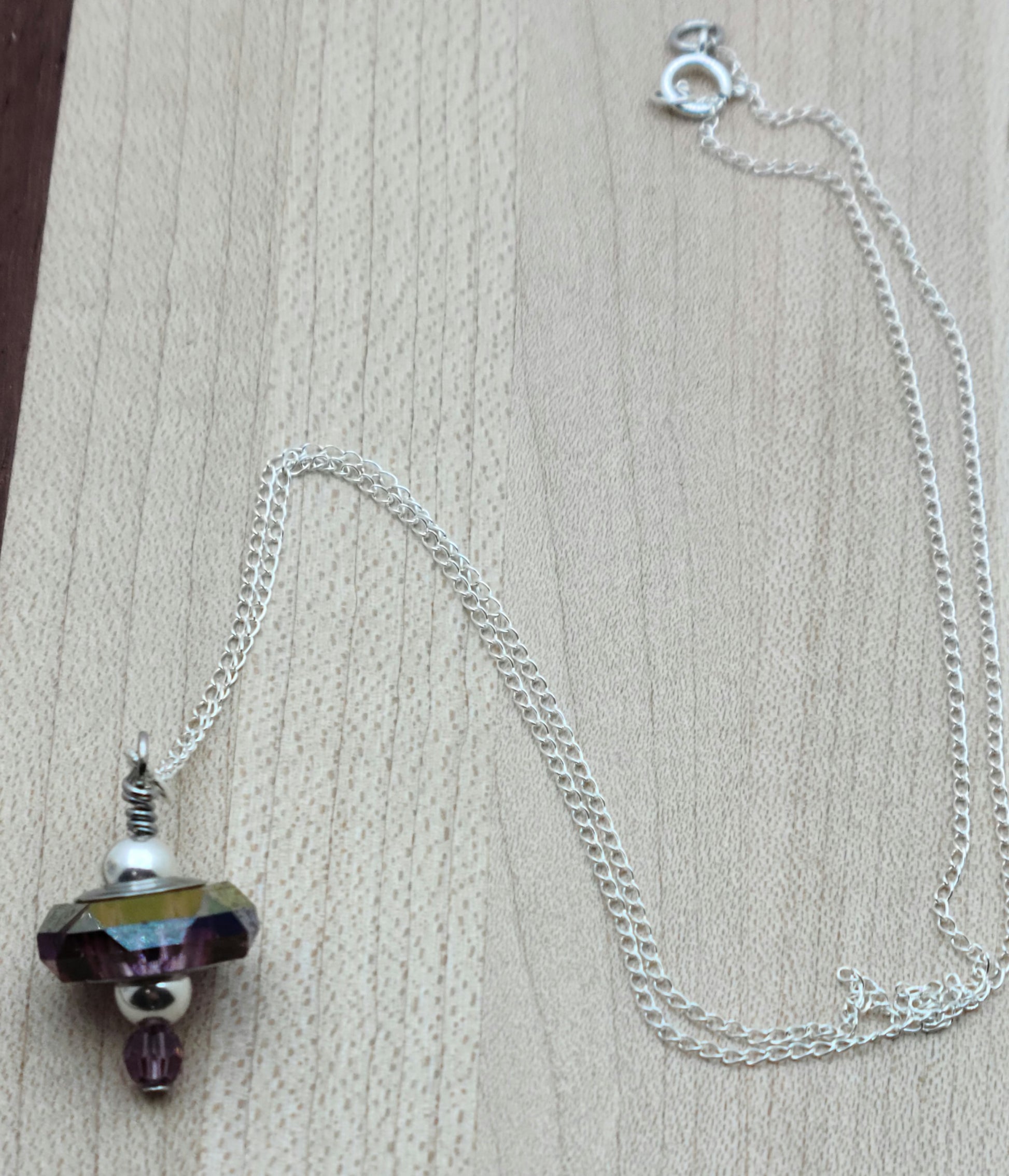 - Large, almost iridescent lilac crystal* on a sterling silver chain.
