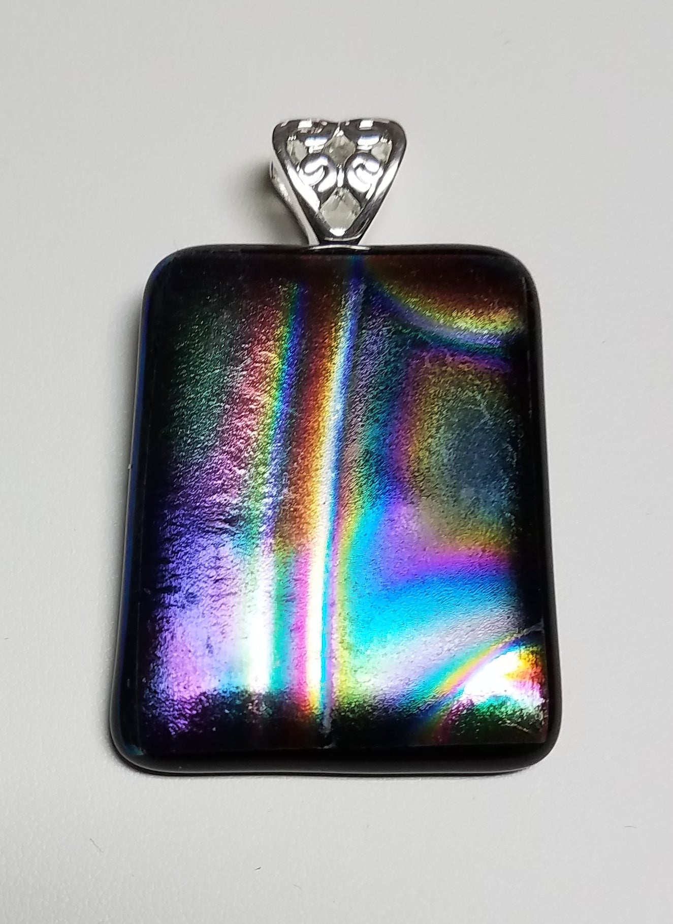 Velvety Rainbow Dichroic Fused Glass Pendant
